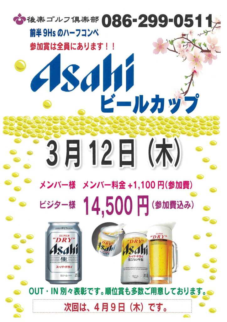 後楽ゴルフ倶楽部では、2026年3月12日(木)にアサヒビールカップを開催いたします。