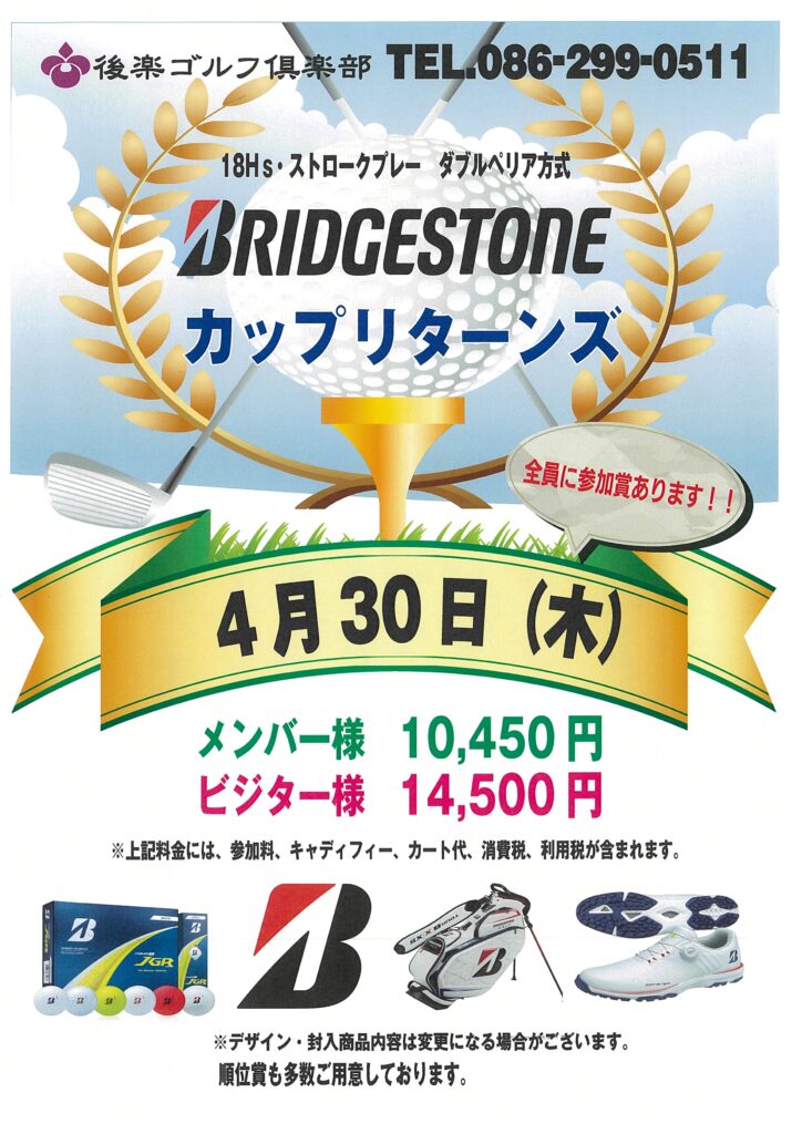 後楽ゴルフ倶楽部では、2026年4月30日(木)にブリヂストンカップリターンズを開催いたします。